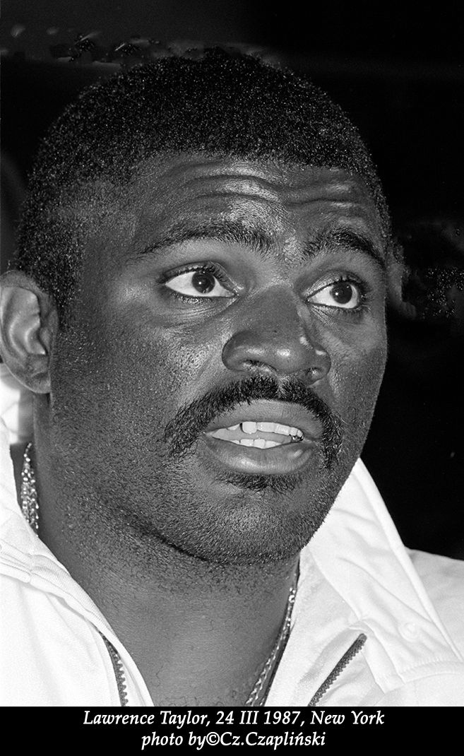„…Spotkałem i fotografowałem Lawrence Taylor 24 marca 1987 r. w Nowym Jorku. Był to sezon niezbyt dobry dla niego, gdyż jego drużyna Giants przegrywała, a on jak to powiedział tracił pieniądze…” – Czesław Czapliński.